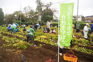 2025年10月25日、見沼田んぼで自然を学ぼう2025集まれ小学生!「 みんなが主役の生物多様性 」の第3回:稲刈りといもほり体験を開催しました。霧雨の降る中でしたが、さいたま市内の小学生とその保護者のたくさんの方々にご参加いただきました。 11月8日には第4回収穫祭を開催します。貴重な自然を通して見沼田んぼの素晴らしさを子供たちとともに体感してまいります。