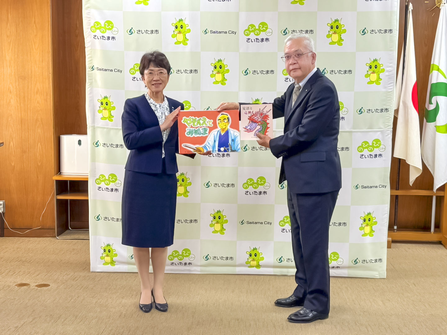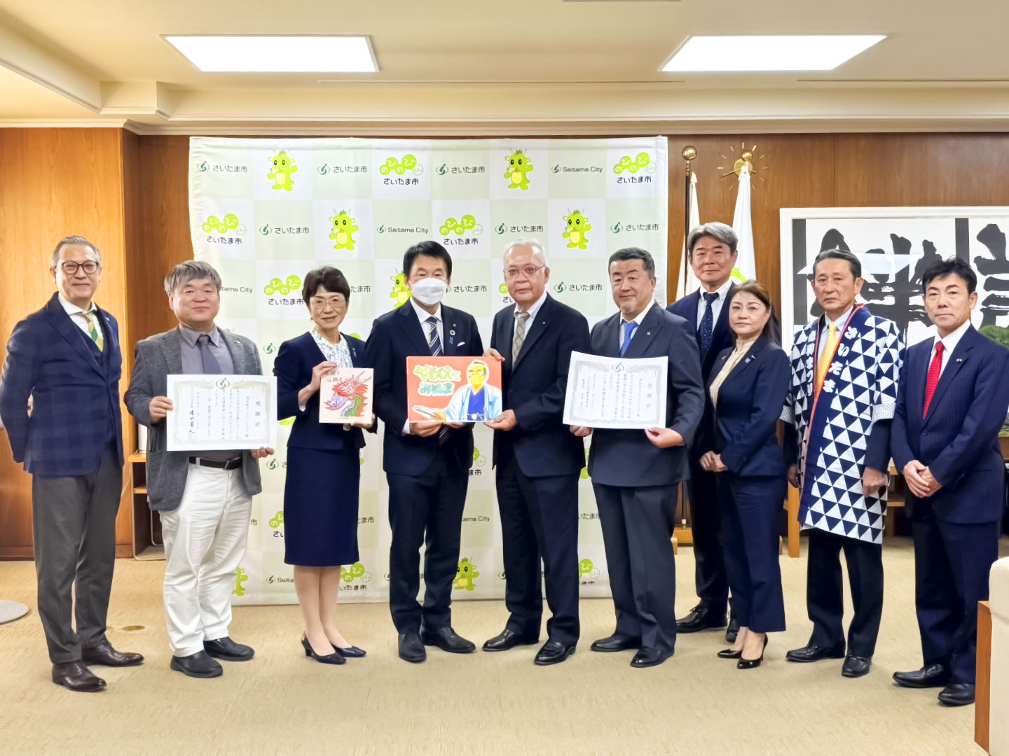 2025年11月26日、浦和東ロータリークラブでは、岡村会長をはじめとする6名が清水隼人さいたま市長を表敬訪問し、「 やそべいと見沼 」の紙芝居を市内の小学校107校及び図書館28施設、児童センター17施設に寄贈いたしました。清水市長と竹居秀子教育長から岡村会長に対し感謝状が贈呈されました。