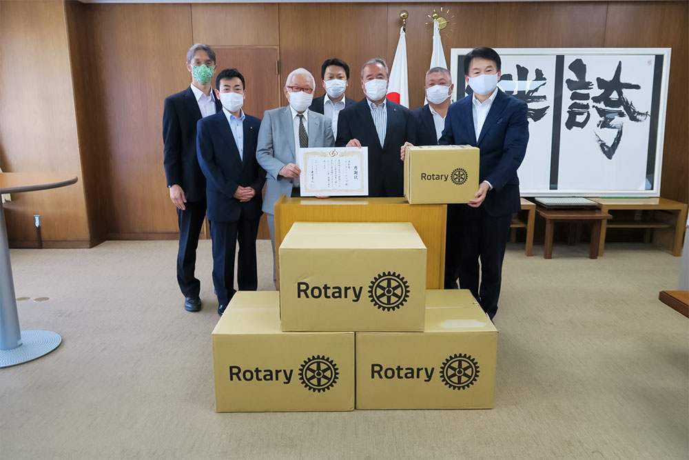 さいたま市に新型コロナウイルス対策に向けたフェイスシールドを寄贈しました。コロナウイルス対策として迅速に対応するため,次年度の事業でしたが,前倒しで行いました。参加者は新旧会長,幹事,次年度社会奉仕委員です。