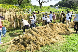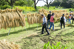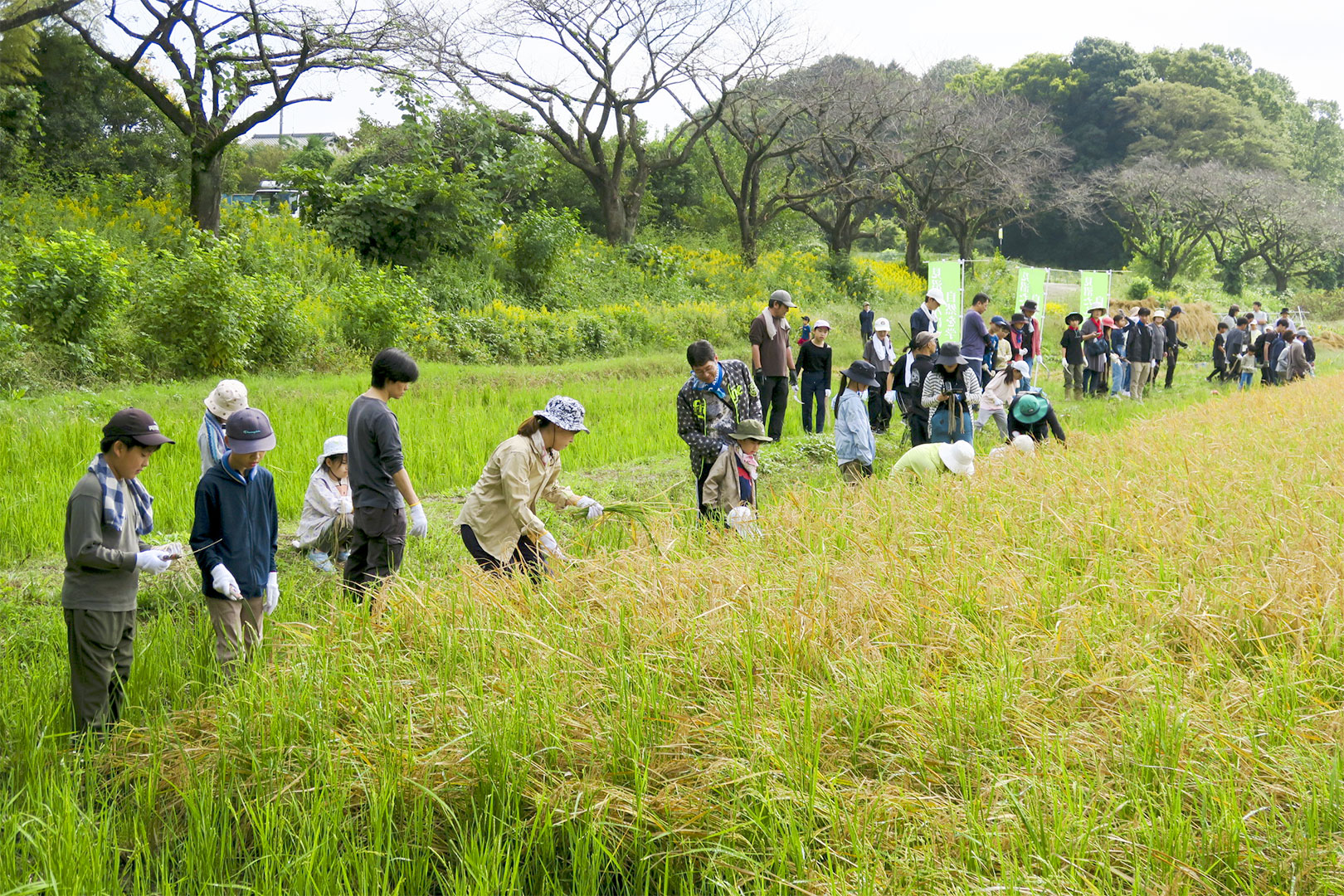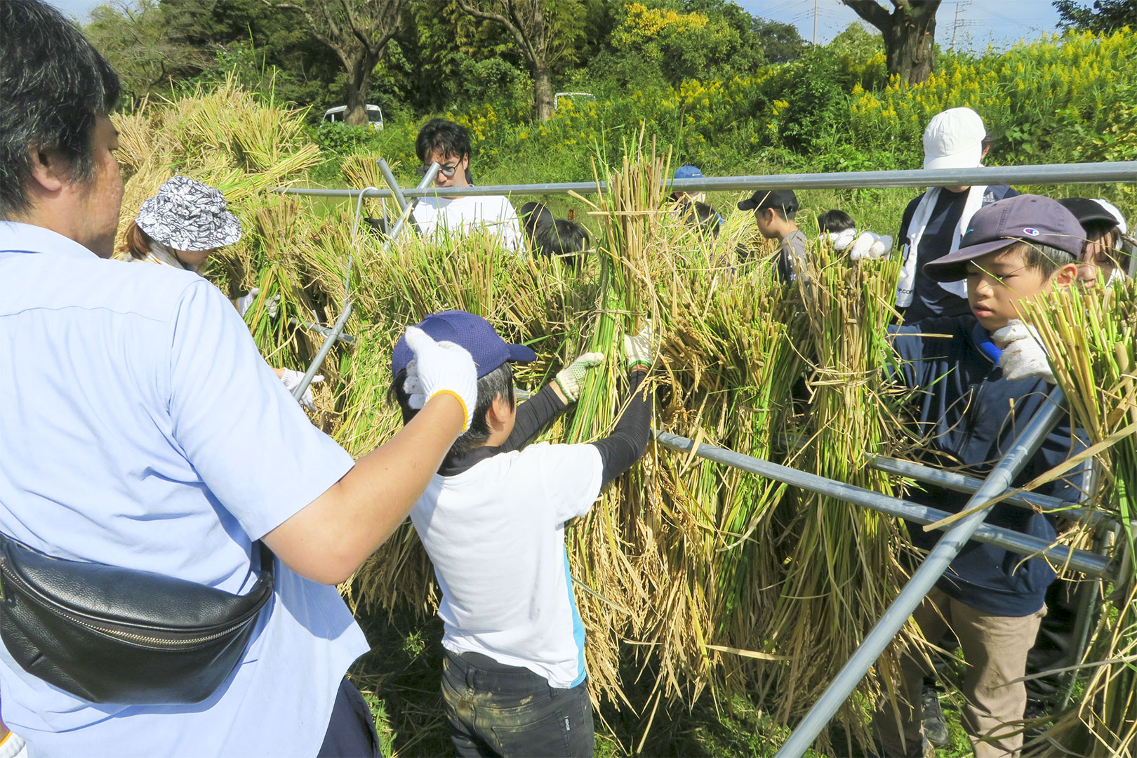 2024年10月19日に「 見沼田んぼで自然を学ぼう 」第3回:稲刈りといもほり体験を開催し,さいたま市内の小学生とその保護者様計約150名の方々にご参加頂きました。第1回:田植とさつまいも苗植え ( 6/1 ) ,第2回:草取りと生き物調査 ( 7/6 ) を実施して,いよいよ稲刈りといもほりとなりました。稲は順調に成長し,さつまいもの紅はるかが大豊作で,焼き芋にしておいしく頂きました。