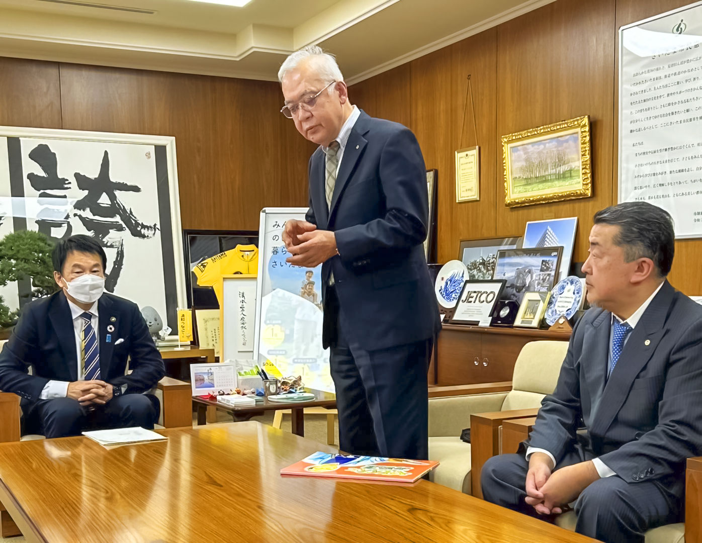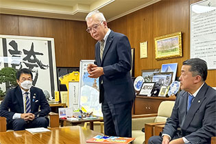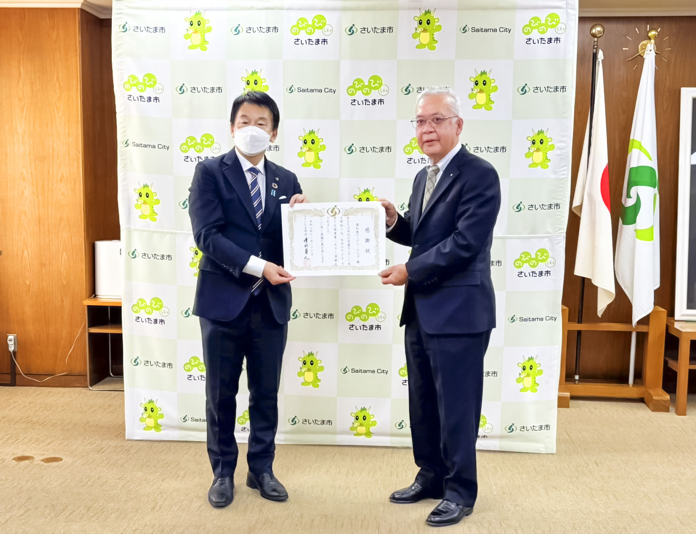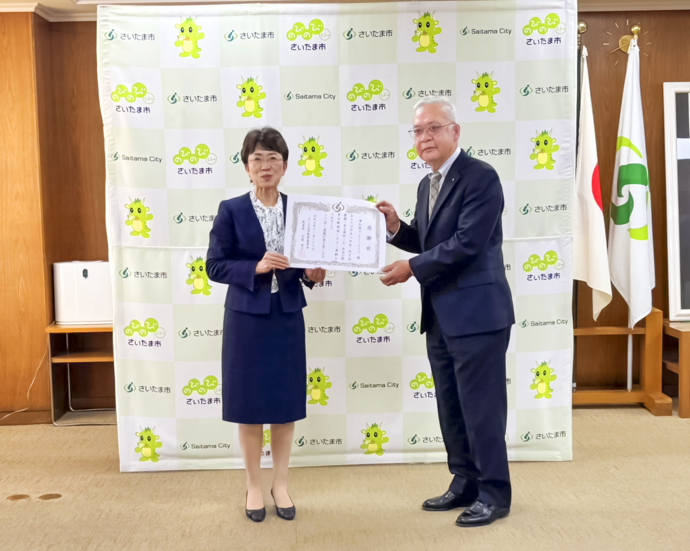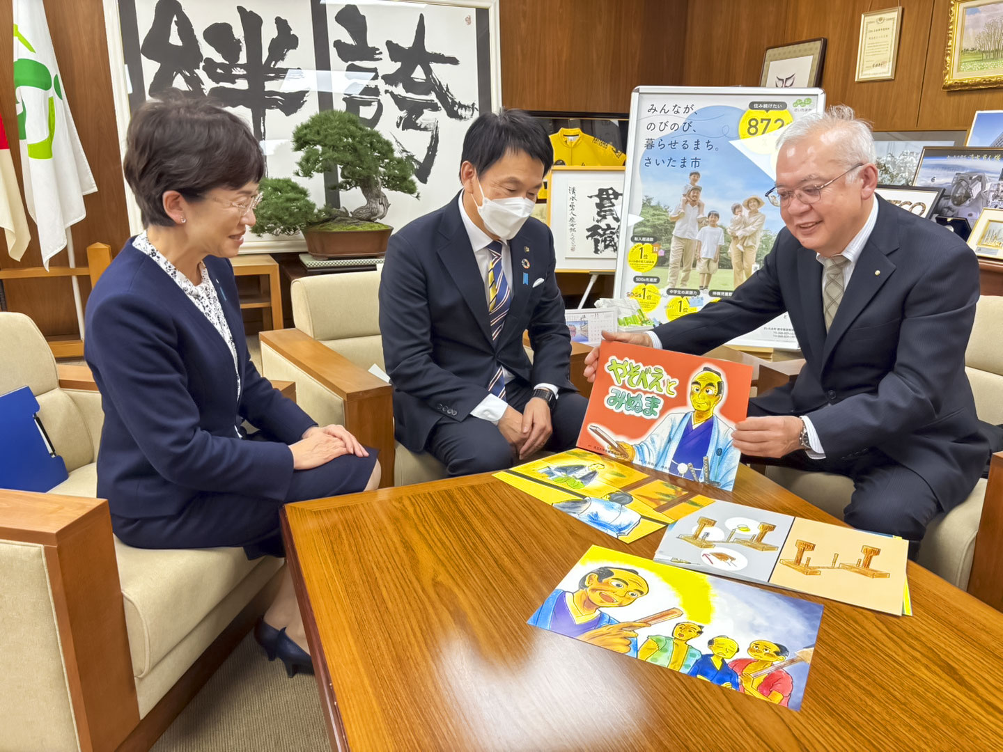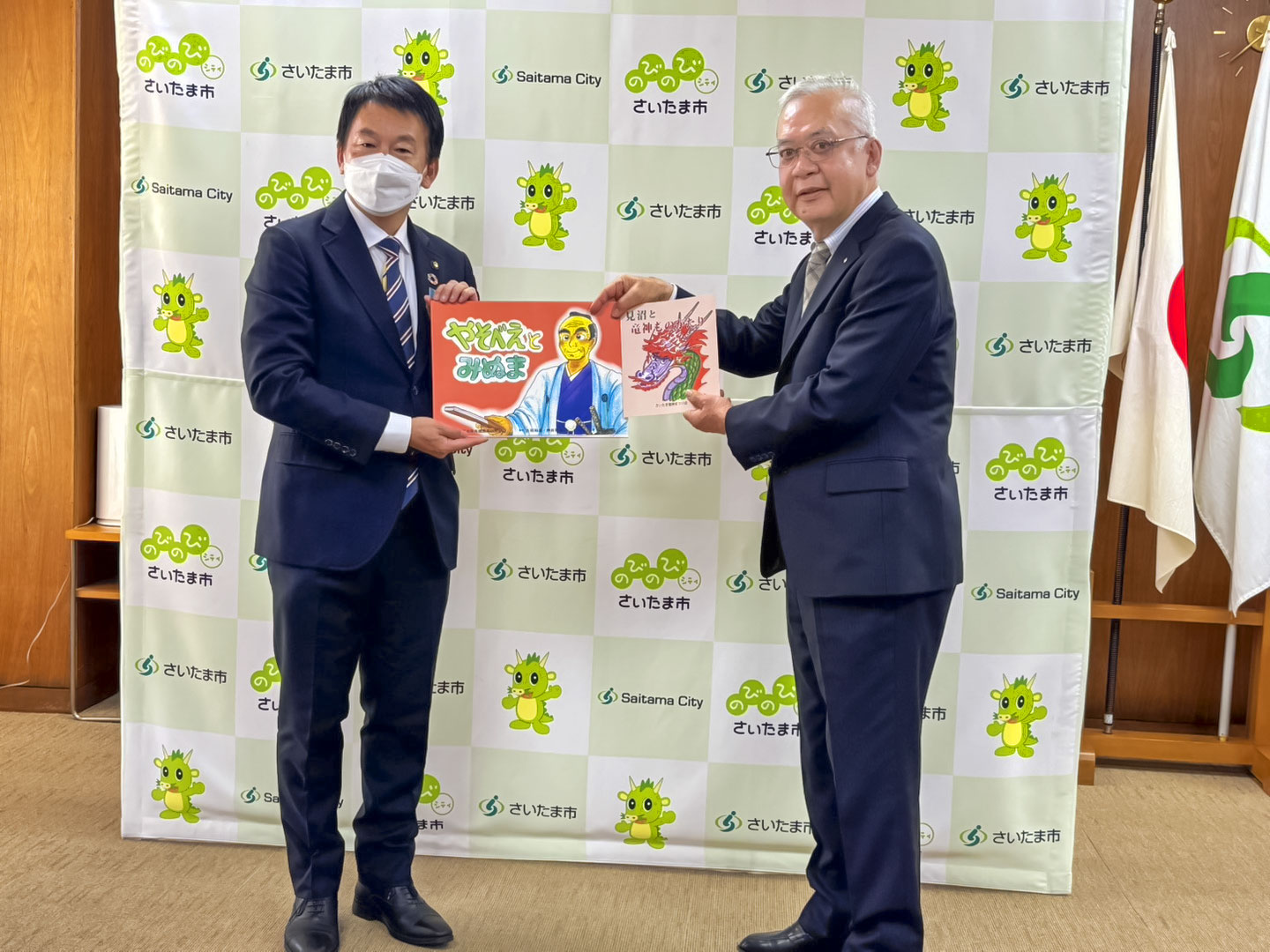 2025年11月26日、浦和東ロータリークラブでは、岡村会長をはじめとする6名が清水隼人さいたま市長を表敬訪問し、「 やそべいと見沼 」の紙芝居を市内の小学校107校及び図書館28施設、児童センター17施設に寄贈いたしました。清水市長と竹居秀子教育長から岡村会長に対し感謝状が贈呈されました。