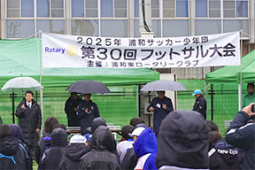 例えば,今年で29年目となる市内のサッカー少年団の小学生を集めての浦和市立高校のグラウンドでのフットサル大会の開催!フットサル大会を通じて,地域の青少年の健全な育成に微力ながらも貢献できたらと思います。