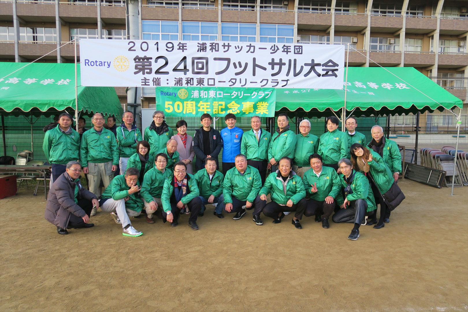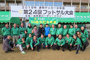 第24回浦和サッカー少年団フットサル大会が2019年12月1日に開催されました。我クラブが本年50周年を迎えるにあたり,クラブチームを大幅に増やし,700名近い選手が参加しました。 試合後は浦和レッズの現サッカー選手の「 宇賀神選手 」,「 武富選手 」を交え,ジャンケン大会で大盛り上がりでした。