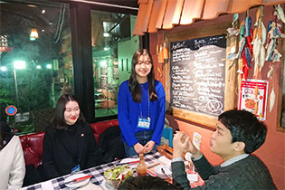 第31回日韓交流事業により2月8日に来日した韓国の学生2名の歓迎会がサムシング本店で行われました。彼女らは6日間日本に滞在し,当クラブの青少年委員会を中心としたメンバーでお世話させていただきます。2019年現在,日本と韓国の関係は政治的には史上最悪の状態と日々報じられています。しかし,我々ロータリークラブに限らず,学生同士・民間レベルでは例年と変わらず交流が活発に行われているようです。当クラブの松村会長は先日の例会にて,「 今,日韓で起こっている大人同士の些細な事も,彼らが若い,子供の時期にでも積極的な交流があればみな解決できている問題なのではないか 」と若年期の交流の重要性を語っていました。我々も微力ではありますが,今後も日韓の架け橋になろうという高い志も持った学生さんの支援を行っていきます。