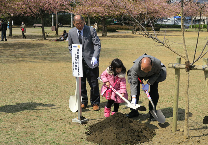 3月18日に地域社会奉仕事業としてさいたま市内の井沼方公園へ桜の植樹とベンチの寄贈を行いました。