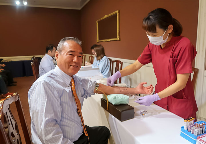 2019年10月31日に,毎年恒例になっております当クラブの医師・歯科医会員による,会員の健康維持・増進を目的とした健康診断が行われました。中小・零細企業に属す当クラブの多くの会員にとって,年1回のこの健康診断は,思わぬ病気も未然に防ぐための貴重なものです。信頼できる医師会員がクラブ内にいる安心感,すぐ相談できる身近さは,東クラブ会員のメリットの一つとなっています。毎年被写体の方々は痛そうな顔をする方が若干名おりますが,和やかな雰囲気の中,診療がされています。