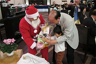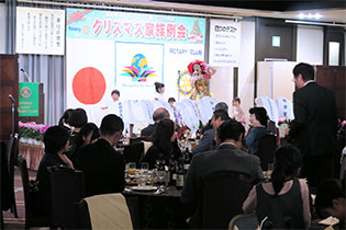 2015年12月17日に毎年恒例のクリスマス夜間例会が開催されました。会員や会員家族,青少年交換留学生のクリスティーナ嬢など,大勢の方々が参加されました。サンタ(?)の登場や,懐メロなっちゃんの歌のステージ,大抽選会等で大盛り上がりでした。最後は皆で手を取り「 手に手つないで 」の合唱で締めでした。