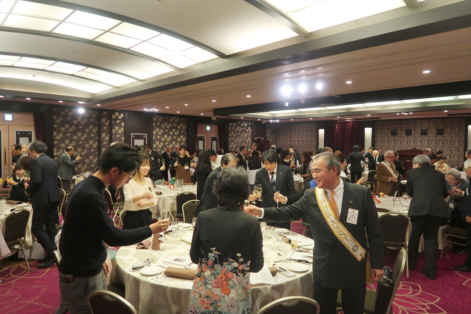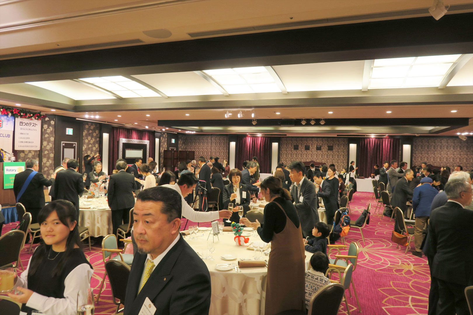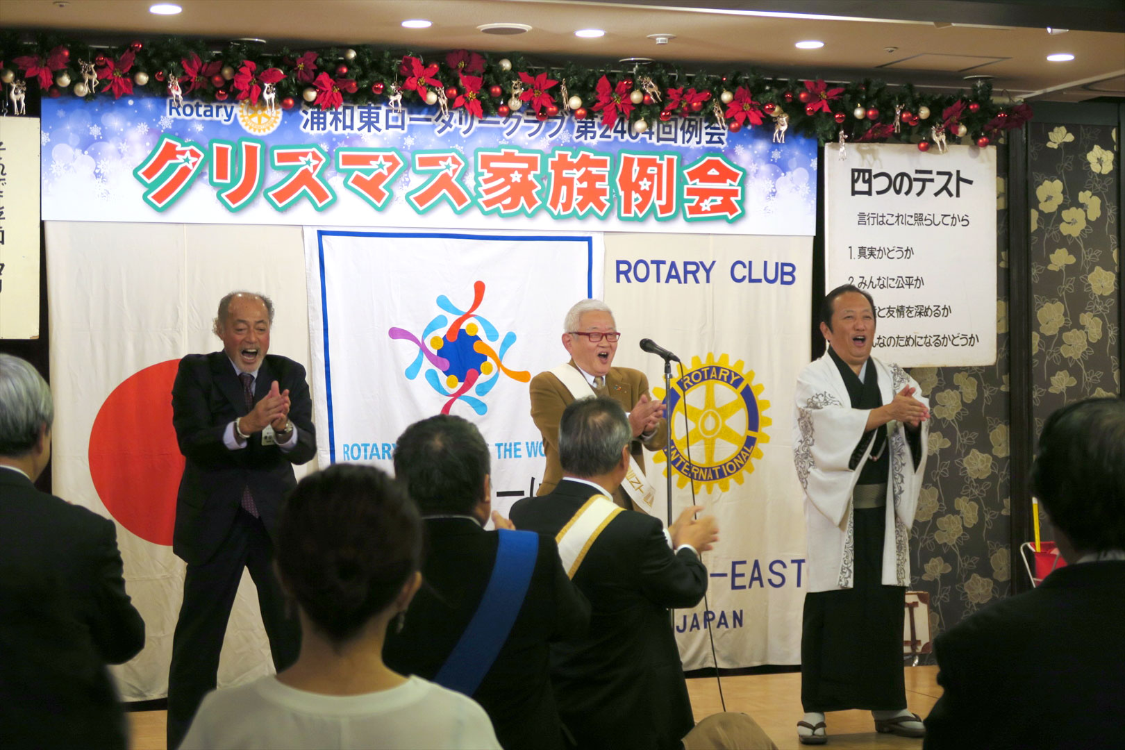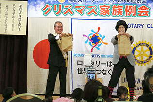 令和元年12月18日に毎年恒例のクリスマス夜間例会が開催されました。記念すべき50周年のクリスマス例会なこともあり,大勢の会員や会員家族,青少年交換留学生のカタリナ嬢などが参加されました。エンターテイナー『 ほっほ 』さんのマジックや子供達や会長を巻き込んでのステージ,ビンゴ大抽選会等で大盛り上がりでした。最後は皆で手を取り大谷部会員の音頭で『 手に手つないで 』の合唱で締めでした。