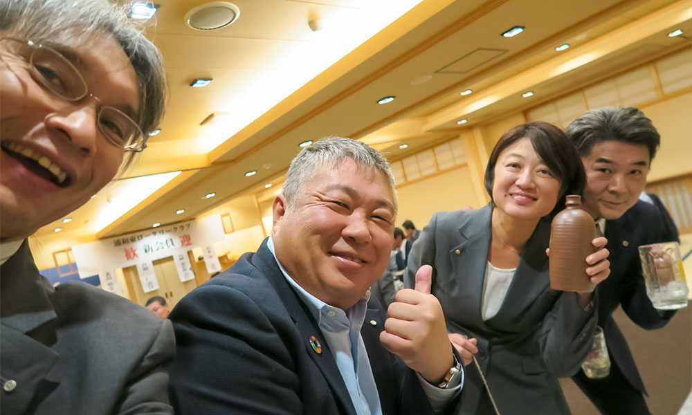 私たちのクラブでは,仲間との時間を大切にします。酒,歌をこよなく愛す仲間もたくさんいます。酒を飲まない仲間も,語らい,歌い倒します。新会員の歓迎会も,クラブ全体で行ないます。浦和東ロータリ-クラブを仲間と楽しみましょう! 2025年11月13・20日 C・D および G,H,I 合同テーブル会が行われました。 2025年8月24日 夜間移動例会懇親会が行われました。 2025年6月26日 2024-25年度最終例会懇親会が行われました。 2025年3月27日 本年度に還暦を迎えられた犬飼会員、小柳会員、髙澤会員、森嶋会員のお祝い会を開催致しました。 2025年3月6日 新会員である松岡貴幸会員、飯渕裕美会員、金子治男会員の歓迎会が行われました。 2024年6月27日 2023-24年度最終例会懇親会が行われました。 2024年3月23日 上野精養軒にて観桜会が行われました。 2023年12月7日 令和5年度に入会した2名の新会員の歓迎会が行われました。 2023年8月31日 令和5年度に入会した7名の新会員の歓迎会が行われました。 2023年6月29日 2022-23年度最終例会懇親会が行われました。 2023年5月21・22日 親睦旅行で山梨県石和温泉に行きました。 2023年3月25日 上野精養軒にて観桜会が行われました。 2022年12月15日 令和4年度に入会した5名の新会員の歓迎会が行われました。 2022年6月30日 2021-22年度最終例会懇親会が行われました。 2022年5月28・29日 親睦旅行で越後湯沢に行きました。 新会員歓迎会② 三井由美子会員,満山隆志会員,金田恵会員,冨田秀樹会員,松本英人会員,宇野三花会員の入会歓迎会が行われました。 新会員歓迎会① 中村国雄会員,氏家健司会員,池田真美員,栗原啓太会員,佐藤徳典会員,村廣幸会員,中舘達治会員,清宮大輔会員,早坂直喜会員,飯塚孝志会員,春日隆会員,小美野聡会員の入会歓迎会が行われました。 2019年11月29日 北島篤史会員,宮崎栄治郎会員,杉本浩一会員,菅間一仁会員の入会歓迎会が行われました。 2019年8月1日 佐藤丈征会員,荻原眞一会員,松本喜博会員の歓迎会が行われました。 2019年5月19・20日 親睦旅行に行きました。 2019年5月16日 矢野会員,水井会員の歓迎会が行われました。 2019年3月30日 上野精養軒にて観桜会が行われました。 2018年6月14日 浦和伊勢丹クローバールームにて新旧委員長引継ぎ会議が行われました。 2018年5月20・21日 親睦旅行で熱海へ行ってきました。 2018年5月17日 A&Eテーブル会が升楽泡にて開催されました。 2018年5月13・14日 金沢西RCとの親睦交流会が浅草米久にて開催されました。 2018年4月23日 B&Fテーブル会がサムシング本店にて開催されました。 2018年4月20日 C&Gテーブル会が勇寿司にて開催されました。 2018年4月19日 D&Hテーブル会が二木屋にて開催されました。 2018年3月31日 上野公園と精養軒にて観桜会が行われました。 2017年9月15日 B&Cテーブル会がサムシング本店にて開催されました。 2017年9月7日 E&Gテーブル会がZAN URAWAにて開催されました。 2017年9月6日 D&Hテーブル会がサムシング本店にて開催されました。 2017年8月31日 A&Fテーブル会がサムシング本店にて開催されました。 2017年8月24日 大山会員,牧野会員,西田会員の入会歓迎会が開催されました。 2017年6月28日 山本育子会員の歓迎と永田会員・清水和会員の送別を兼ねた会が開催されました。 2017年5月21日・22日 金沢西RCとの合同例会&親睦旅行で石川県へ行ってきました。 2017年3月25日 大宮公園とフランス料理「アルピーノ」にて観桜会が行われました。 2017年3月16日 飯塚会員,佐藤会員,長田会員,大場会員の歓迎会が行われました。 2017年2月3日 めでたく結婚された高橋清斗会員のお祝いの会を開催しました。 2016年10月22日 浦和ダイヤモンドRCとの合同夜間例会~京浜工業地帯夜景見学東京湾クルーズ~ 2016年8月24日 移動例会で東京ドームへ行き,プロ野球「巨人対広島」戦を観戦してきました。 2016年7月28日 小田切会員の送別会が開かれました。 2016年6月12日・13日 親睦旅行に行ってきました!! 2016年6月9日 谷脇純子会員の歓迎会が盛大に開かれました。 2016年4月17日 金沢西RCとの合同例会を行いました。 2016年3月26日 毎年恒例の観桜会が上野精養軒にて行われました。 2015年11月27日 飯嶋清会員の歓迎会が盛大に開かれました。 2015年9月2日 吉村雅男会員のご快気・復帰を祝う会が行なわれました。 2015年8月27日 夜間移動例会として,健康ランド武蔵野にてテーブル対抗親睦カラオケ大会がおこなわれました。