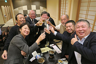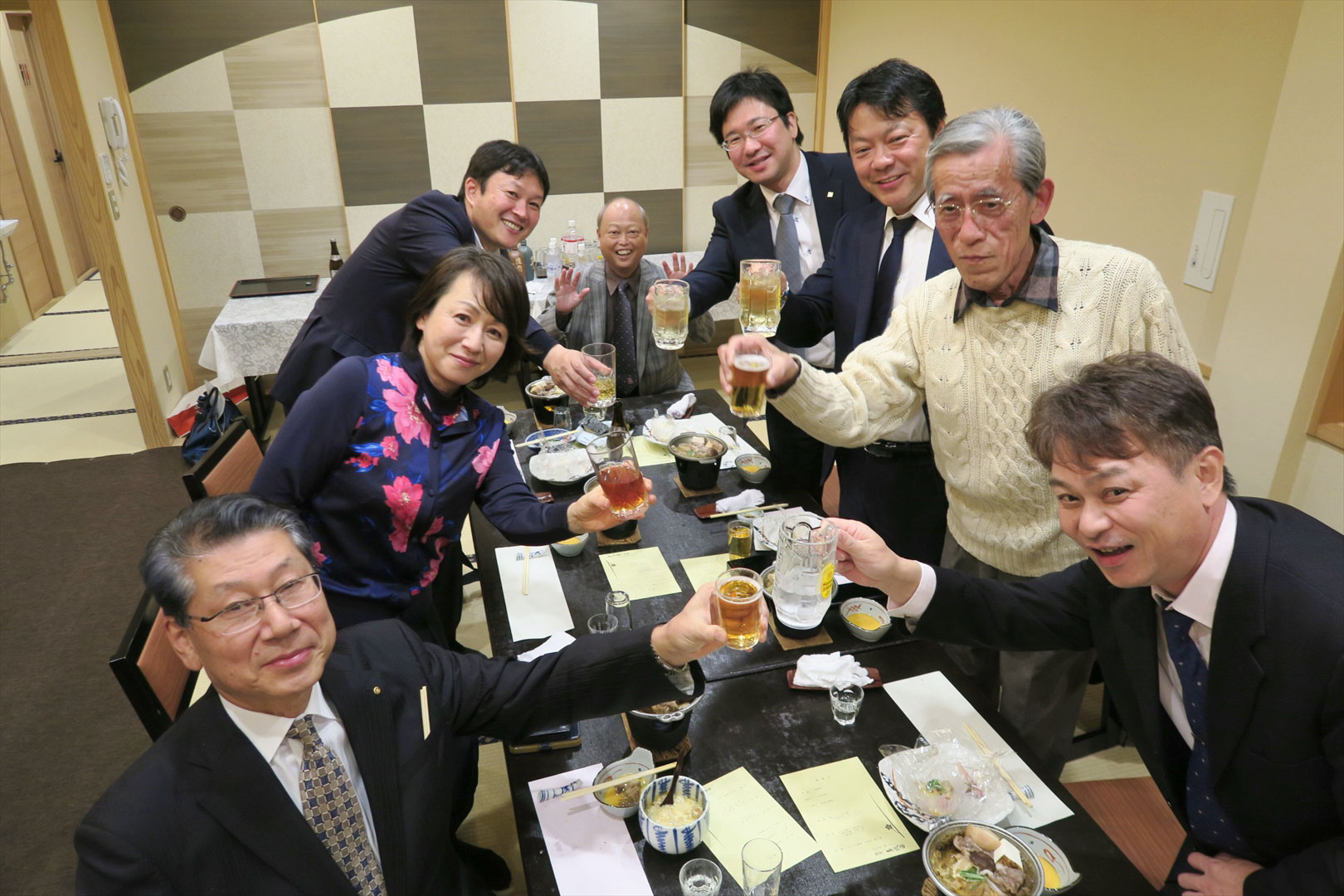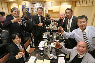 11月29日,割烹千代田にて,北島篤史会員,宮崎栄治郎会員,杉本浩一会員,菅間一仁会員の入会歓迎会が行われました。50名近い会員が集まり,賑やかに行われました。6テーブルに分かれて,時間で席をローテーション。そのたびに乾杯!! お疲れ様です!! 今後のロータリー活動にも期待しております!!