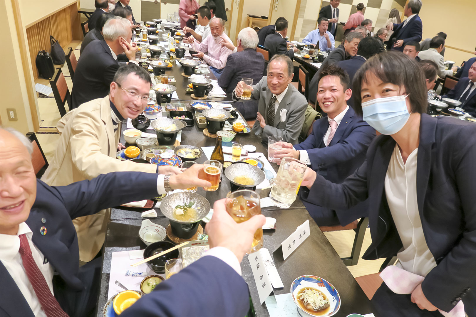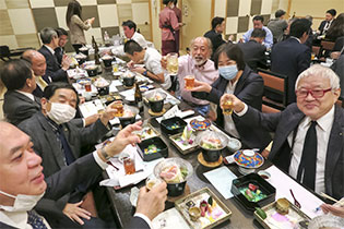 新会員歓迎会①中村国雄会員,氏家健司会員,池田真美員,栗原啓太会員,佐藤徳典会員,村廣幸会員,中舘達治会員,清宮大輔会員,早坂直喜会員,飯塚孝志会員,春日隆会員,小美野聡会員の入会歓迎会が行われました。多くの会員が集まり賑やかに行われました。時間で席をローテーション。そのたびに乾杯!! お疲れ様です!! 今後のロータリー活動にも期待しております!!